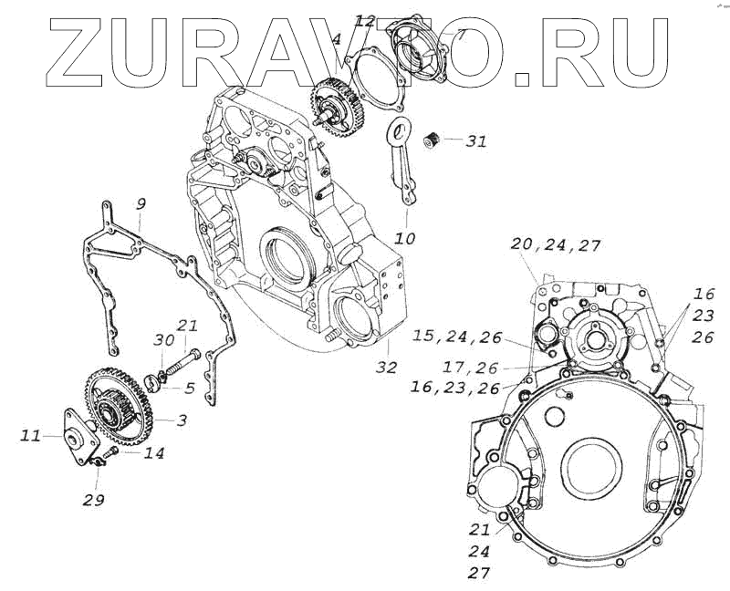 | 32 | 7405.1002310 | Картер маховика с крышкой без люка для КОМ Евро-2 в сборе (ПАО КАМАЗ) |